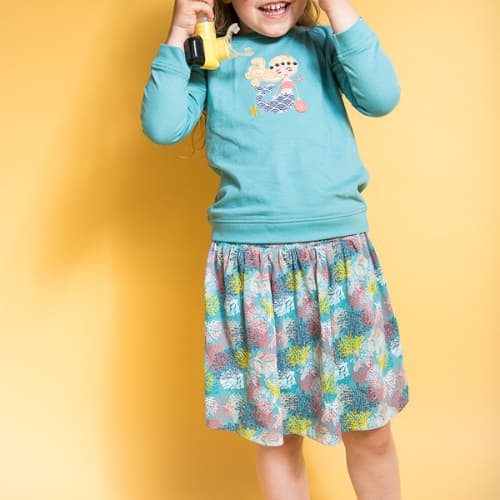 Das Label kommt aus Stuttgart und hat fröhliche, nachhaltig gefertigte Oberteile, Mädchenröcke und Kleider bis Größe 128 im Angebot. Mott odieser Saison sind Meerespflanzen und Muscheln. So eine fröhliche Kollektion! Das nachhaltige Label ist GOTS zertifiziert. Eine Zertifizierung, die die ganze Produktionskette auf Herz und Nieren prüft. Und nicht nach dem Anbau der Baumwolle aufhört, wie man es leider immer wieder findet.
