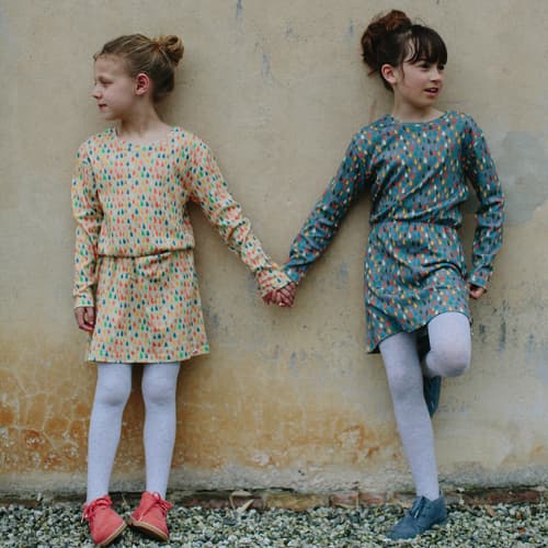 Die Regentropfenkleider sind auch bei Sonnenschein ein Hingucker. Leichte Langarmqualität mi bequemen Gummizug.