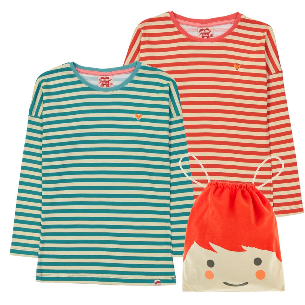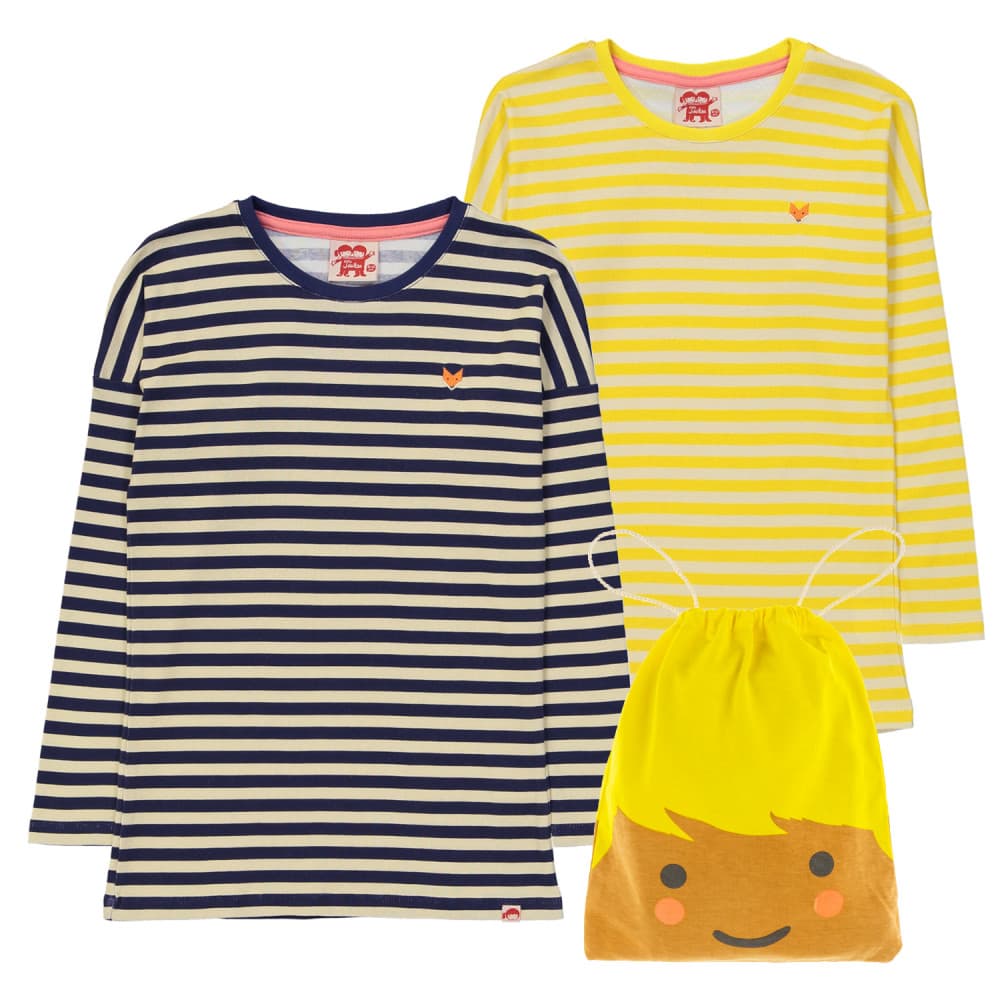 Das englische Label Tootsa sieht sich als Unisex Brand. Bei Kleidern ist die Zuordnung wohl eindeutig, die Muster sind jedoch nicht bewusst mädchen- oder jungenhaft. Eben für jeden Geschmack das Richtige. Die Langarm Ringelshirts gibt es im zweier Pack in einem süßen Täschchen – auch ein perfektes Geschenk.
